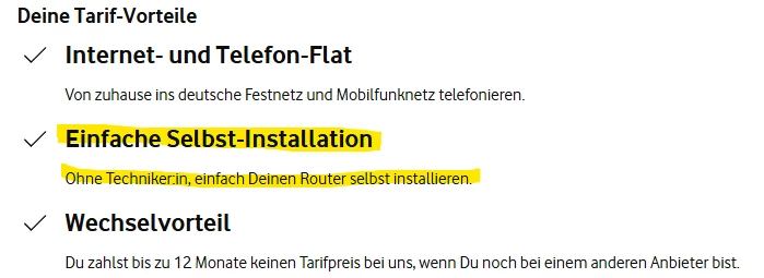 Wenn ein Techniker Termin nötig ist sieht das in der Tarifübersicht wie folgt aus: