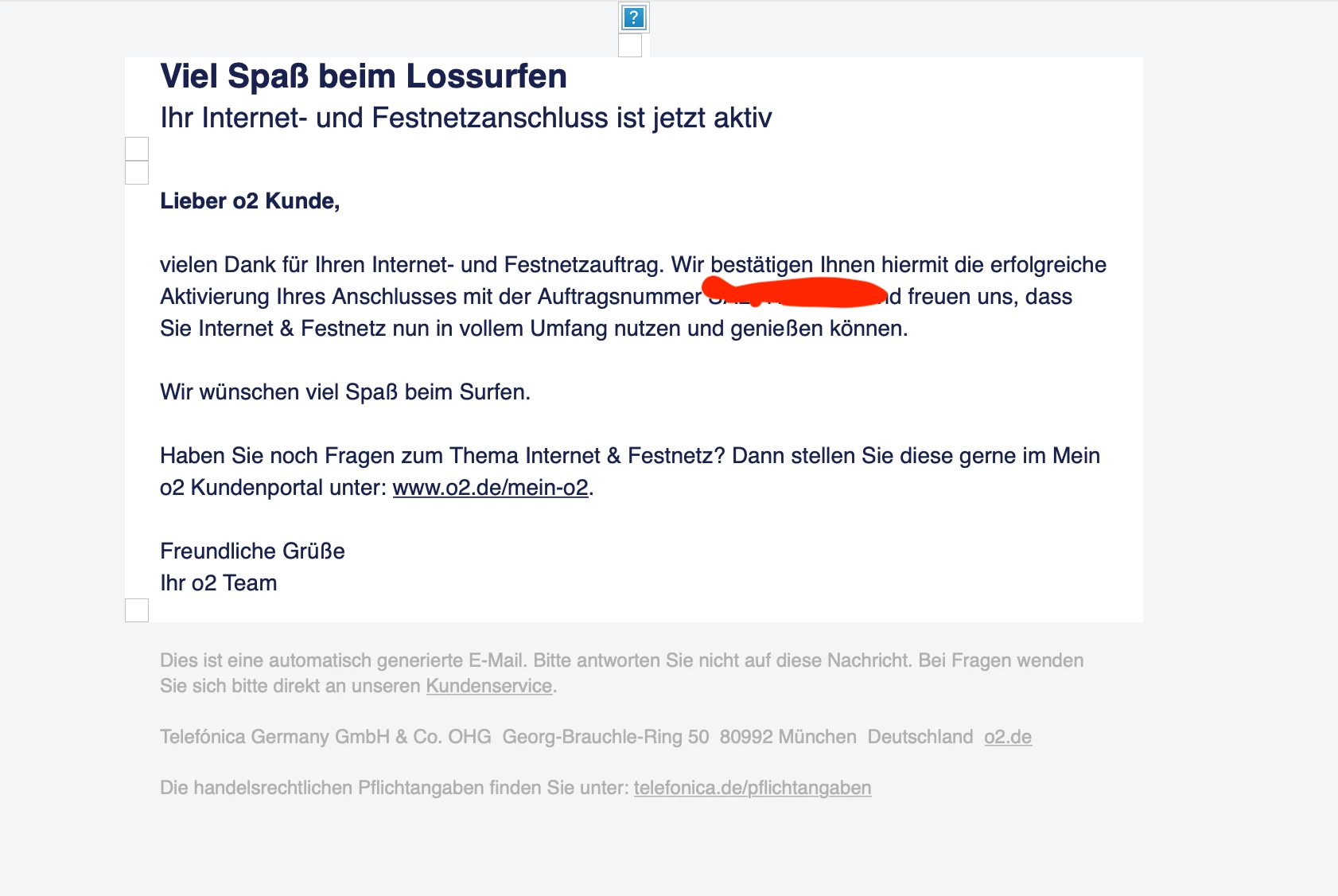 Mit der Hotline von O2 vereinbarte ich direkt im Anschluss, dass der DSL-Anschluss wieder aktiviert wird. Dies sollte laut Hotline im Verlauf des Tages (7.6.2022) geschehen. Heute, am 9.6.2022 habe ich leider immer noch kein Internet.