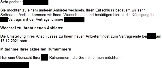 Mein alter Anbieter bestätigt die Kündigung mit Umstellungstermin 13.12.(!)2022(!)