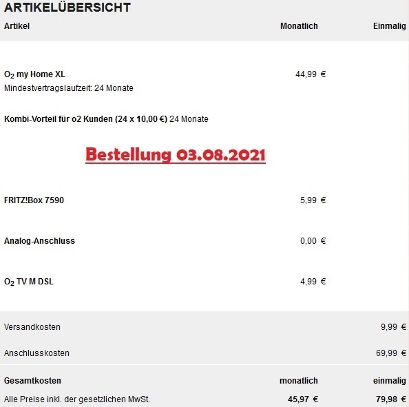 Bei O2 (siehe Bild 3), zahle ich insgesamt mit Router = 30,98€/Monat