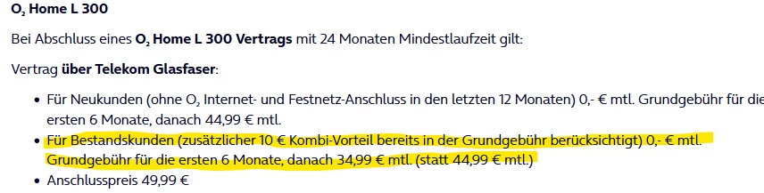Ich habe mir das Angebot angesehen, muss aber leider sagen, dass es selbst mit Kombi-Vorteil nicht Konkurrenzfähig mit den “Neukunden-Angeboten” ist (weder von O2 noch den anderen Martkteilnehmern). Entsprechend werde ich hier ein anderen Angebot warnehmen.