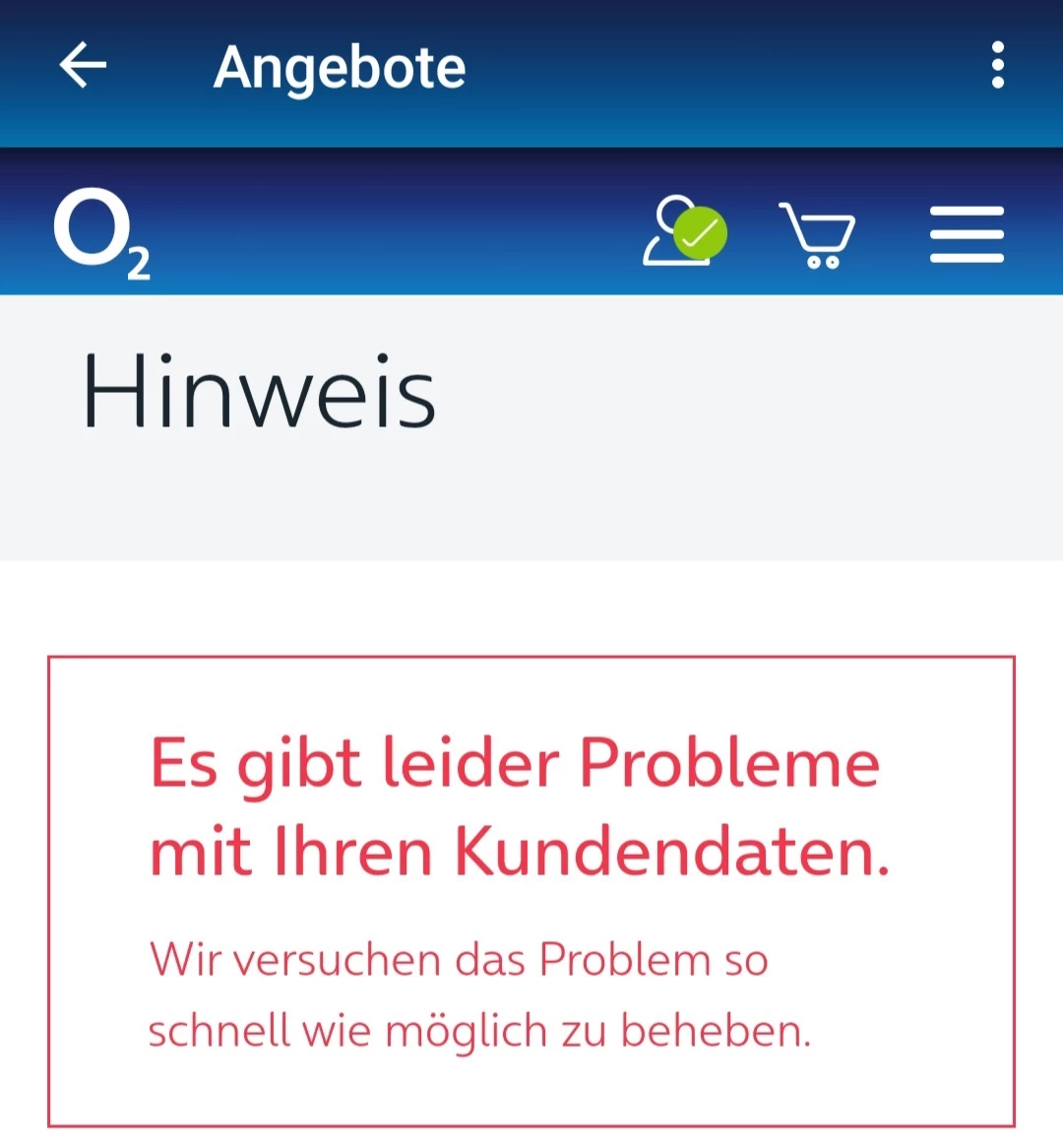 Hallo, wenn ich mir mein Angebot für die Vertragsverlängerung anschauen will, bekomme ich seit Wochen über den Browser und auch über die App folgende Fehlermeldung: