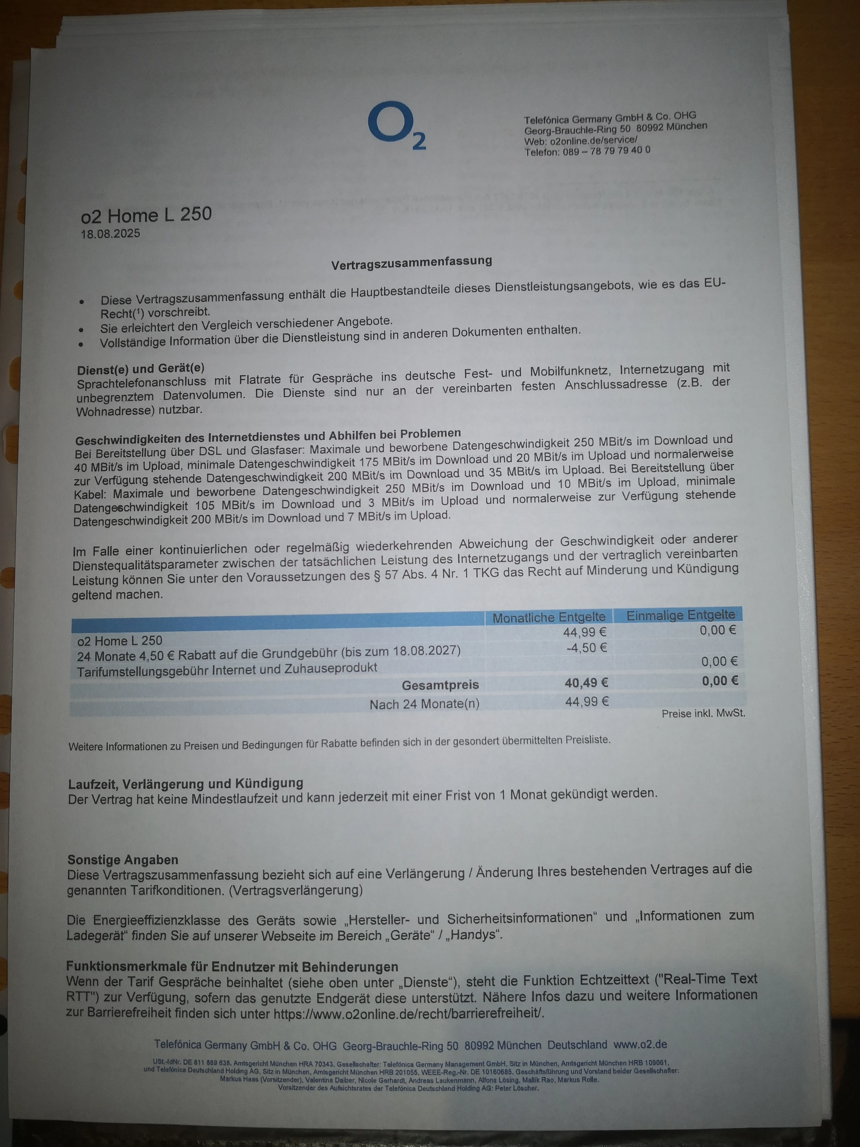 @o2_Maria Hallo Maria, nein ich habe bis jetzt nicht widerrufen, da es ja keine Alternative gibt... und für noch mehr Klärung und hin und her habe ich keine Nerven. Aber ich habe daraus gelernt... das ich nichts mehr weiteres mache... hatte noch mal überlegt und mit der Hotline telefoniert, ob es was bringen würde meinen Mobilvertrag zu O2 zu holen, aber mein 3. Anruf bei der Hotline war wieder so verwirrend... das ich keine Lust mehr habe, noch mehr Probleme zu bekommen... und mein Widerruf endet wohl bald... hatte das Angebot am 16.08. erhalten und am 18.08. bestätigt, Danke und Gruß
