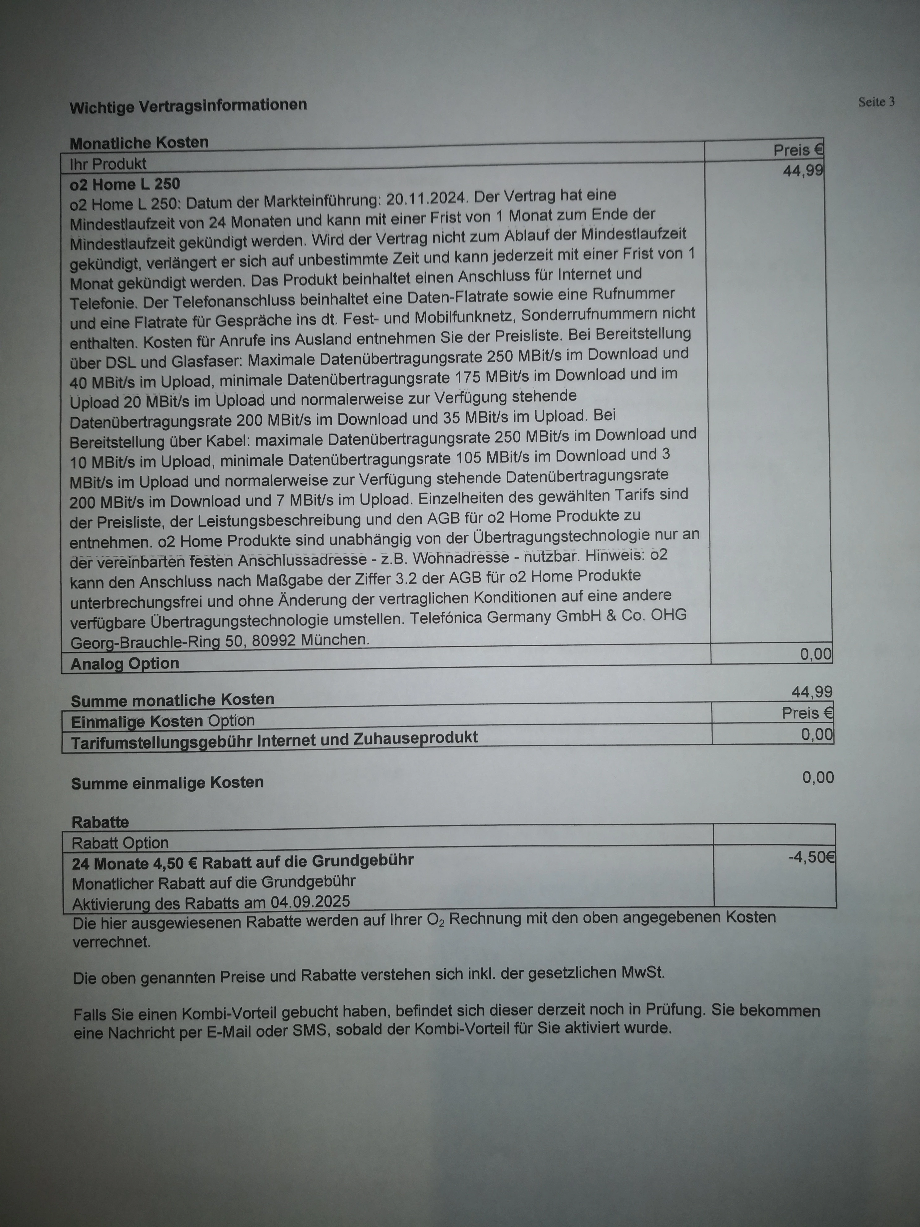 Ja, Widerruf ist klar, das ist auch was die Hotline dann angeboten hat... ich finde es nur sehr fraglich das man ein Angebot bekommt und wenn man es bestätigt steht dann etwas anderes drin und man hat wieder zusätzlichen Aufwand und keine Lösung für sein Problem... falls es einem überhaupt auffällt, hier mal das Angebot und was dann draus geworden ist wenn man bestätigt... das Problem ist für mich im Angebot (unteres Bild) der Absatz unter dem hellblauen Kostenfeld…so ist das Angebot ok, aber laut Hotline beim 2. Gespräch, geht das garnicht was im Angebot steht??? Ist für mich irgendwie Betrug...