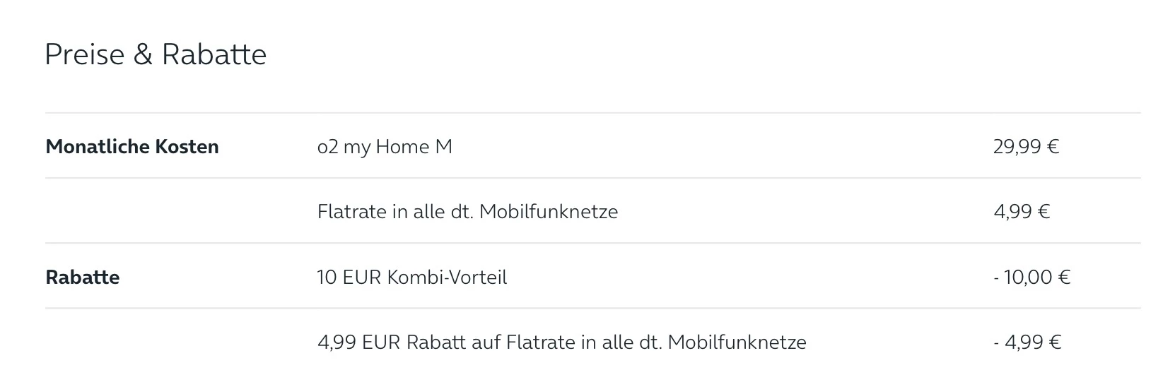 Gemäß der Transparenzverordnung möchte ich dich auf unsere Produktinformationsblätter hinweisen, welche du unter www.o2.de/produktinformationsblatt herunterladen kannst. Dort findest du alle Produktdetails (ohne Rabatte) aufgelistet.