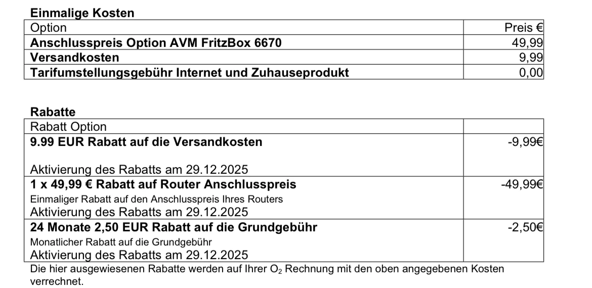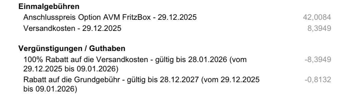 habe ende Dezember 2025 meinen Festnetzvertrag verlängert/umgestellt. Auf dem Angebot, was man ja immer während des Telefonats per Mail bekommt, steht auch ganz klar drauf: 100% Rabatt auf Anschlusspreis.