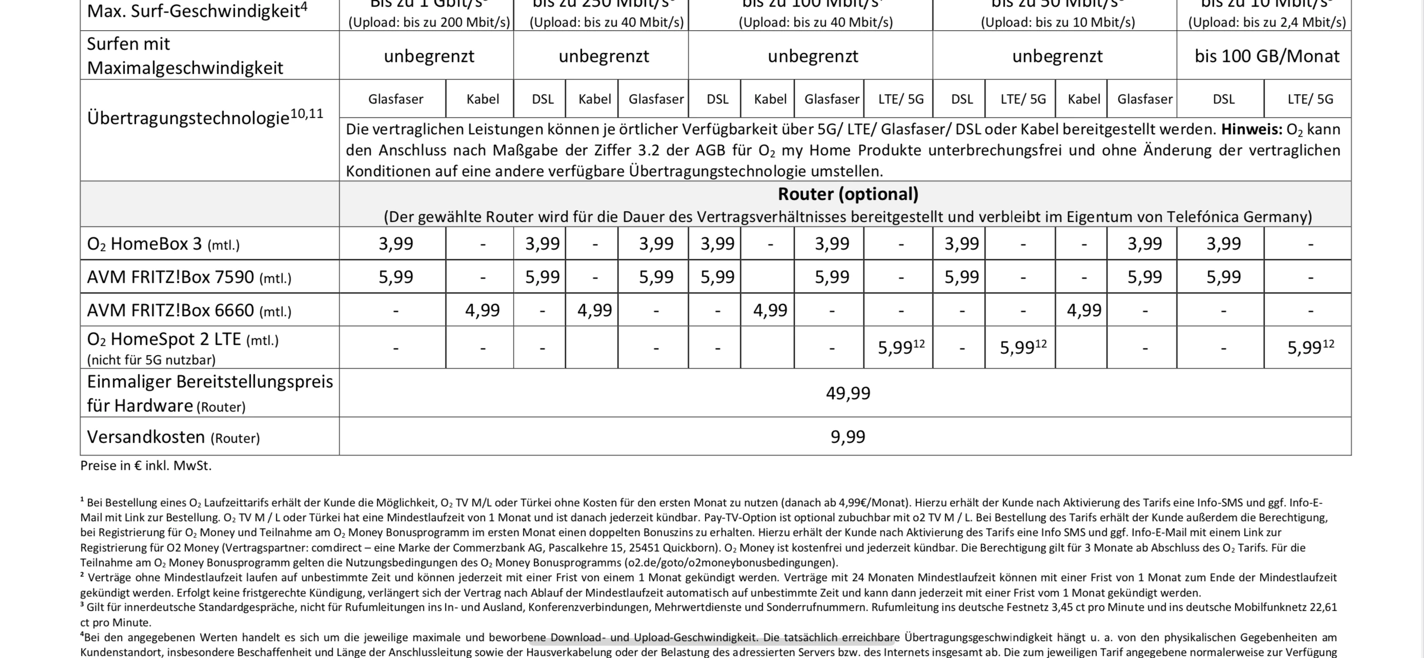 Hallo, ich wollte zu meinem laufenden DSL Vertrag lediglich einen router zubuchen. Am Telefon sagte man mir, das dieses nicht möglich sei. Ich wollte die fritzbox 7590. Man machte mir ein Angebot, wobei der Betrag von den Gebühren bleibt, So dass nur 0,99€ dazu kommne pro Monat. Nun sehe Ich in meiner Rechnung einen einmaligen Anschlusspreis  von 49,99€, angeblich für den Router. Ich bin bei gar keinem Telefonat mit o2 darauf aufmerksam gemacht worden, daß dieser zusätzlich  fällig ist. Somit bin ich auch nicht gewillt, diesen zu begleichen. Solche Angaben MÜSSEN dem Kunden auch per Telefon mitgeteilt werden. Über die Hotline kommt man mir nicht entgegen. Nur die Aussage, ich müsse nach Nürnberg schreiben und und und. Ich finde es wirklich eine Frechheit, so mit langjährigen bestandskunden umzugehen. Vielleicht kann mir jmd einen Tipp geben, wie ich weiter  vorgehen kann. Ich werde definitiv bei nächster Gelegenheit den Anbieter wechseln. Danke für Rückmeldungen.