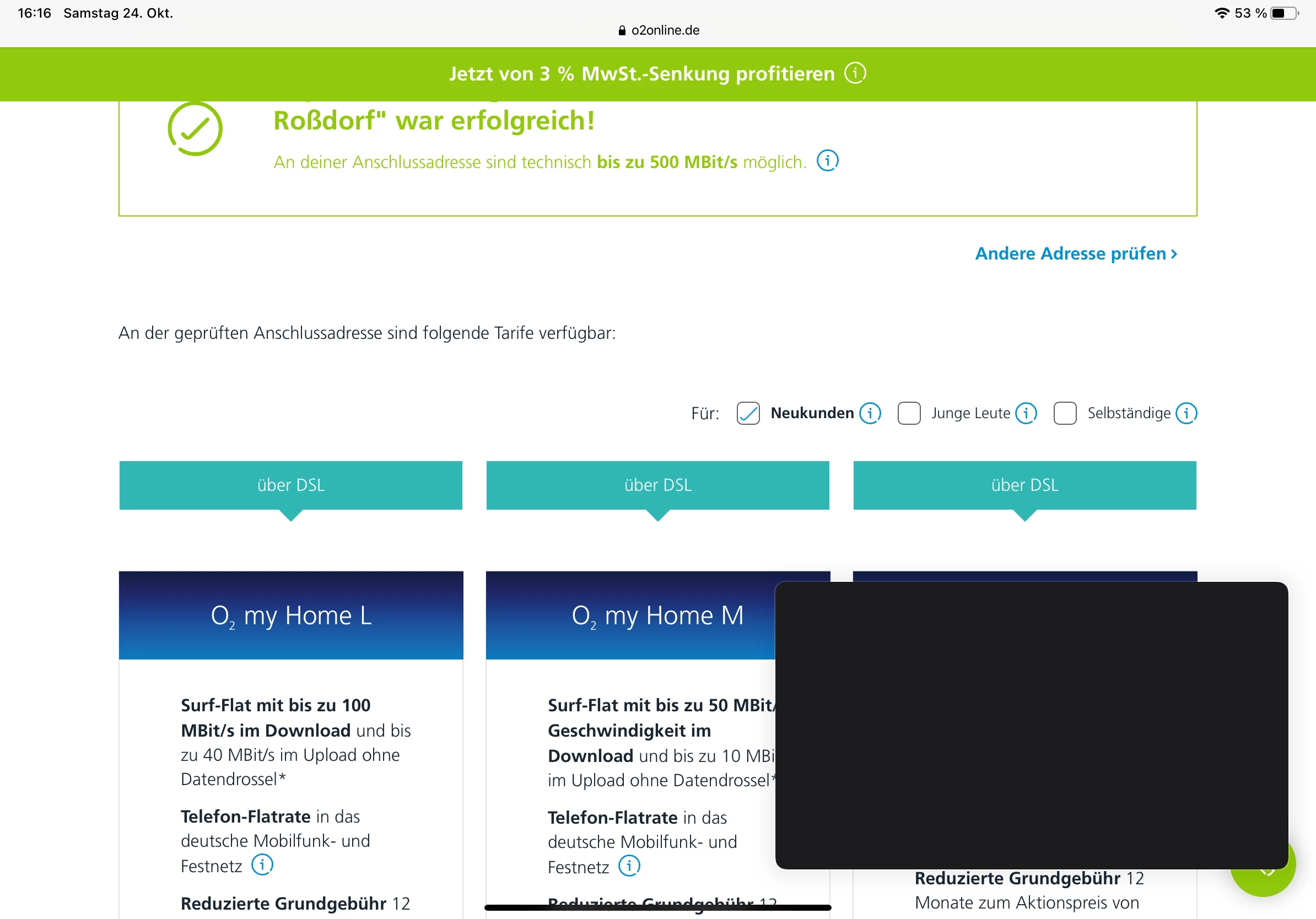Für seine neue Wohnung brauchte er Internet. Wir haben die Anbieter verglichen, O2 war der einzige der für seine neue Adresse mit bis zu 50 Mbit/s beworben hat. Wir haben den Vertrag unterschrieben.