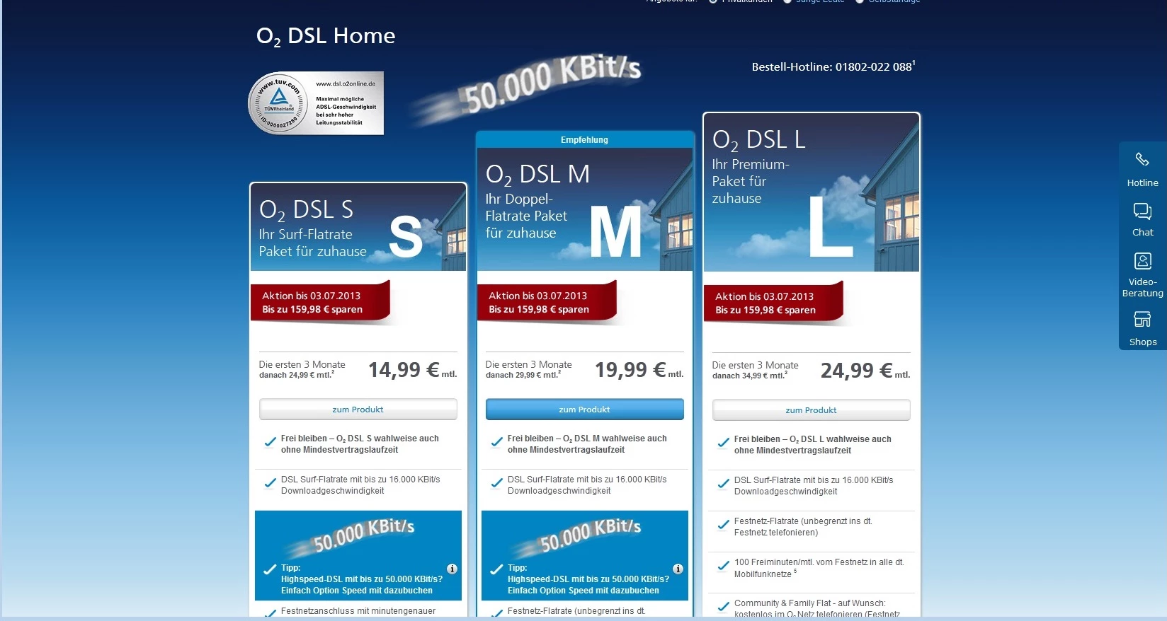 Ich habe am 02.07.2013 um 17:45 Uhr bei Frau Gxxxxxxx über die O2 Hotline (als Neukunde) den Tarif DSL M gebucht.