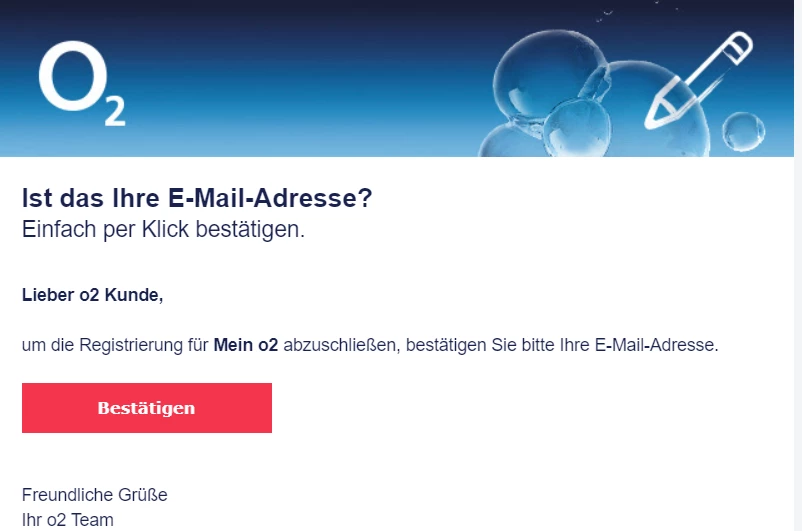Ich habe bei Check24 einen DSL Vertrag bei O2 bestellt, und habe ich schon eine Bestätigungsmail bekommen, aber der Link funktionert nicht. Kann ich die E-mail nochmel bekommen?