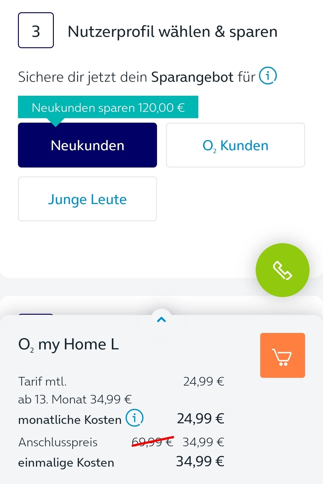 Bei einem "my Home L" (eine Leitung, eigener Router) für Neukunden wären das folgende Konditionen: