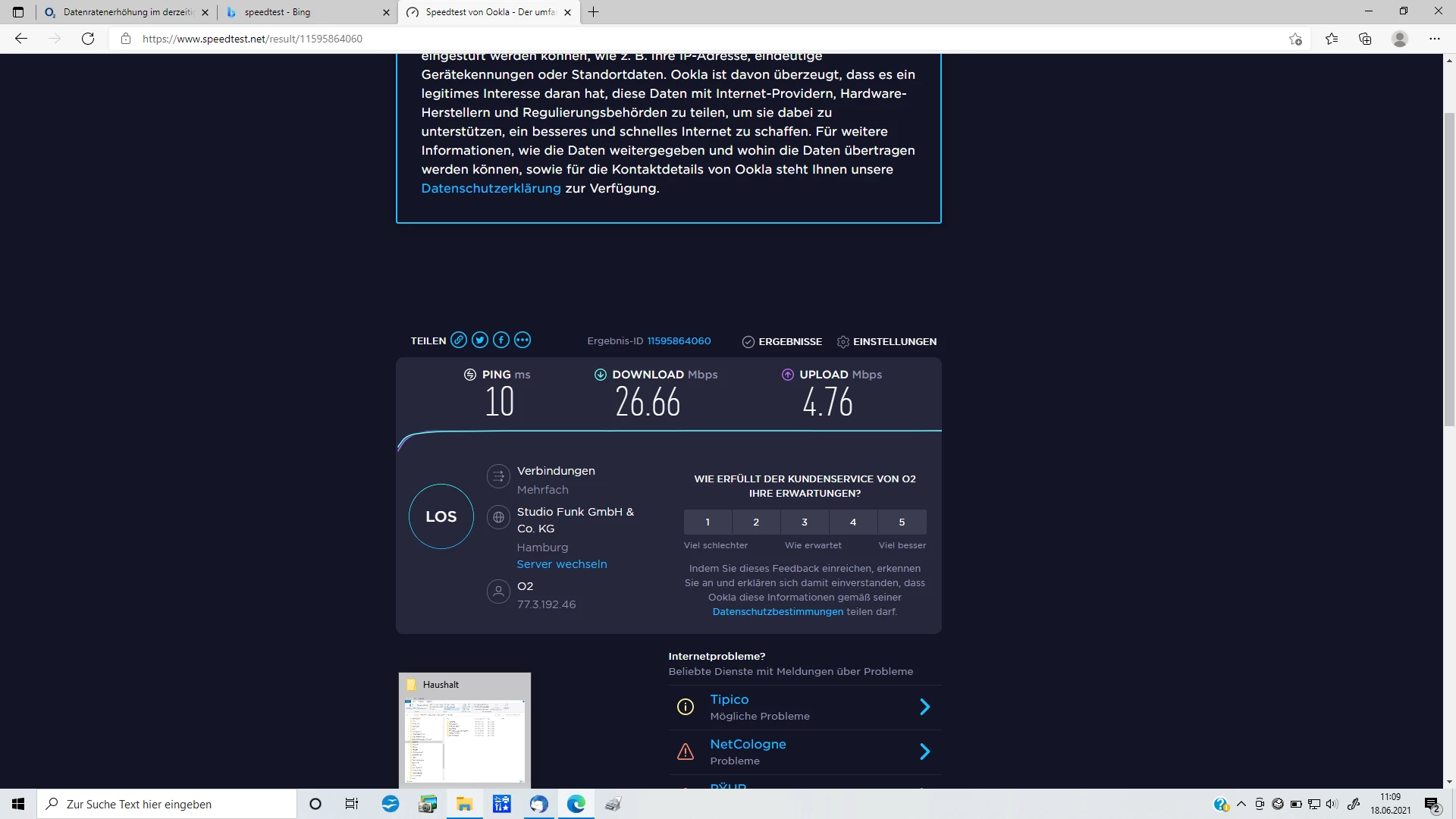 Bei Speedtests bitte sicher stellen, dass WLAN ausgeschaltet ist und nur ein Gerät per LAN-Kabel mit dem DSL-Router verbunden ist. Laut Screenshot wurde der Test nicht per LAN-Kabel durchgeführt.