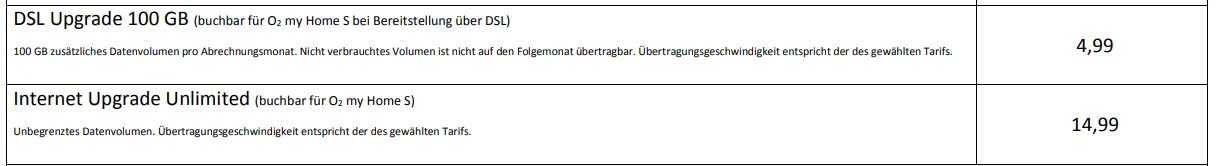 Anmerkung: Wenn der Tarif vor dem 03.11.2020 bestellt wurde, erfolgt nach Überschreiten der 100 GB im Abrechnungszeitraum eine Reduzierung der Geschwindigkeit auf max. 2 Mbit/s. Siehe Produktinformationsblatt und Auftragsbestätigung