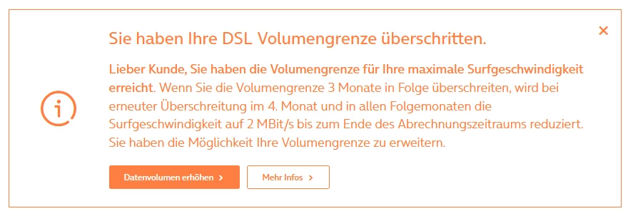 Ich hab sogar extra ein Textfeld wenn ich mich einlogge, das mich darauf hinweist, dass nach 3-maliger Überschreitung des Monatsvolumens ab dem 4. Monat die Geschwindigkeit gedrosselt wird.