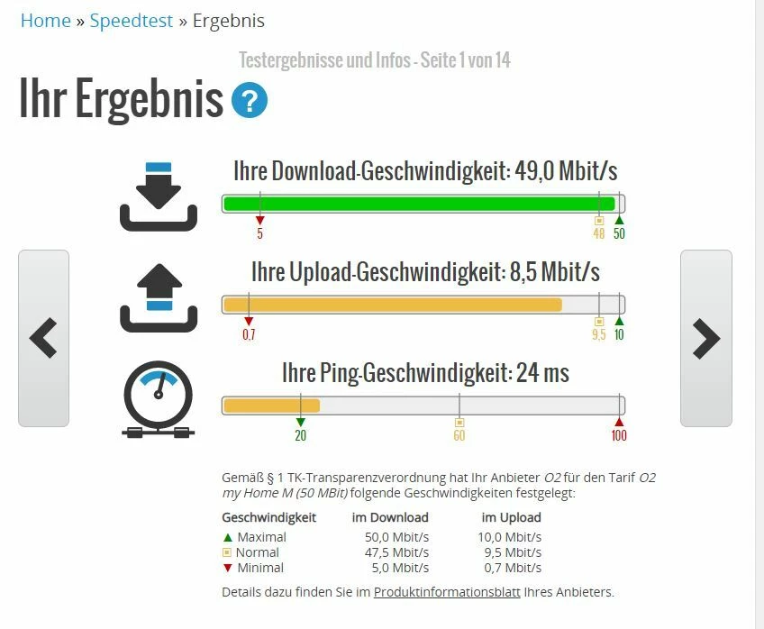 Seit heute haben wir unseren o2 DSL Anschluss auf 50MBit erweitert, geliefert wird aber maximal 15,4MBit laut speedtest auf wieistmeineip.de