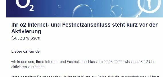 Am 1.2.2022 habe ich o2 DSL bestellt. Danke.