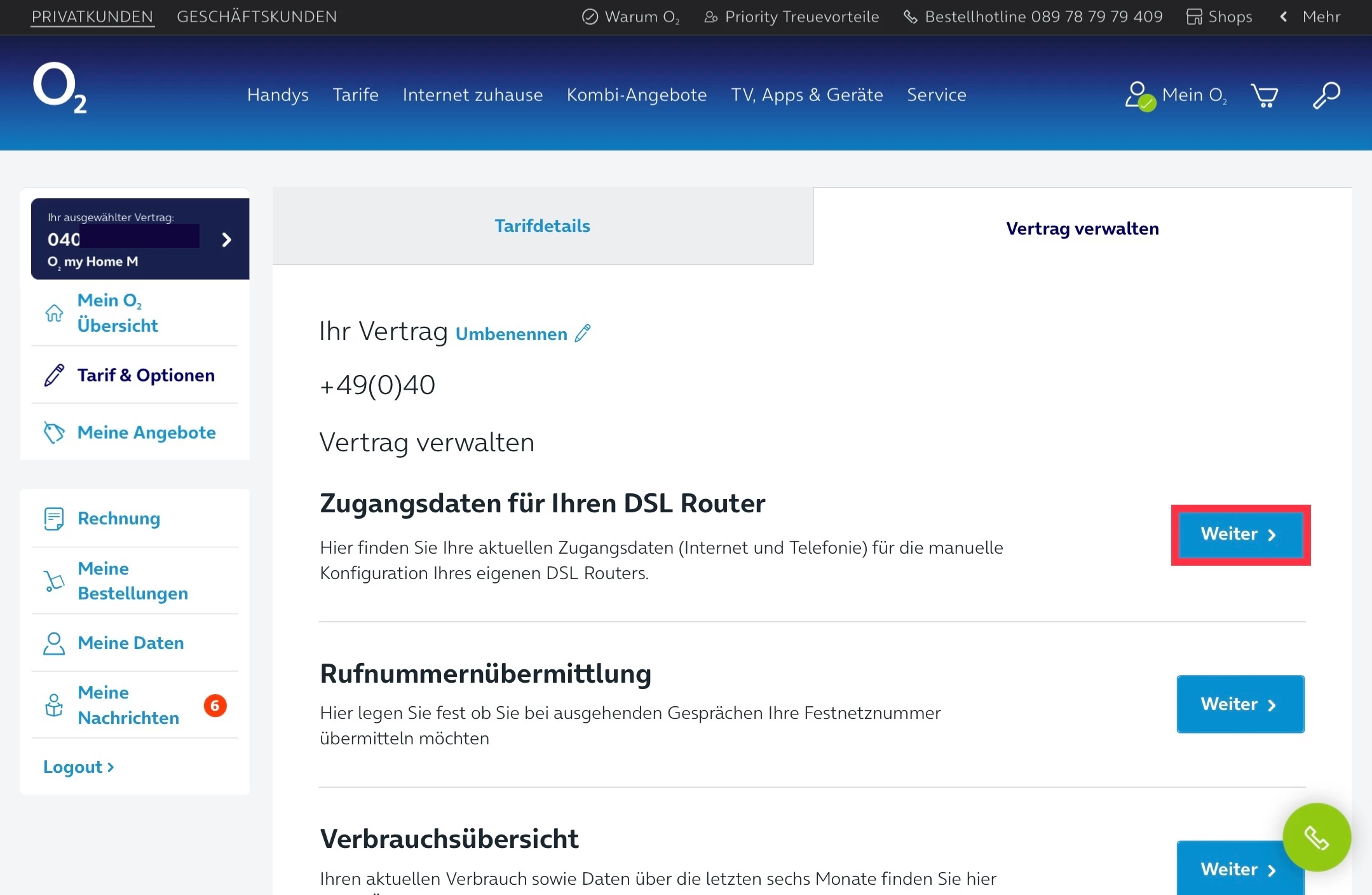 @Magleso du nutzt aktuell noch den Interessenten Login. Erst nach Schaltung kannst du dir einen vollwertigen Login erstellen, dafür dann deine Festnetznummer: https://login.o2online.de/idm/#/registrieren/registrieren-mit-dsl registrieren und mit dieser anmelden. Dort findest du dann deine Zugangsdaten im Reiter Vertrag verwalten: