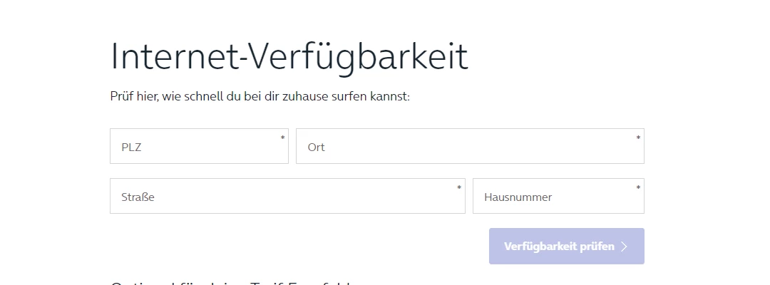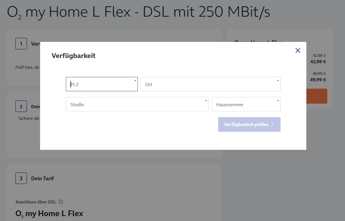 Leider kommen wir auf den O2 Internetseiten nicht weiter, da die Seite mit Adresseingabe und Prüfung nicht funktioniert, in dem sich öffnenden Fenster sind keine Eingabefelder vorhanden, nur die Überschrift ist zu sehen.