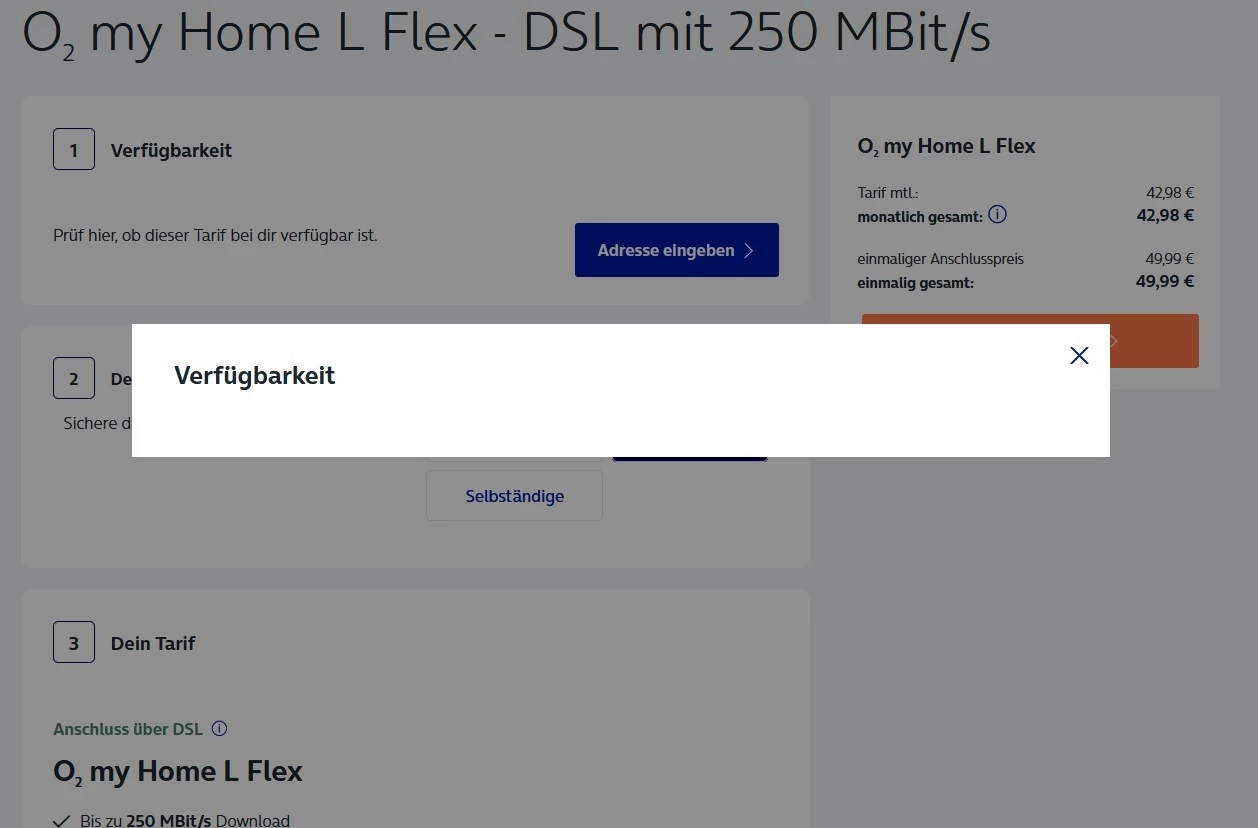 DSL Beauftragung: Prüfung und Adresseingabe funktioniert nicht