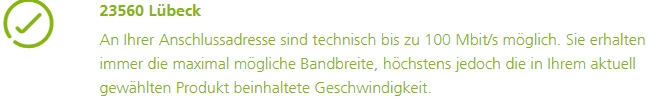 Die maximale Produktgeschwindigkeit meines entsprechenden aktuellen O2-Vertrages liegt aber bei 50 MBit/s. Mittlerweile sind an meiner Adresse nach Verfügbarkeitscheck sowohl bei der Telekom als auch bei O2 100 MBit/s verfügbar.