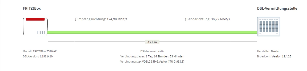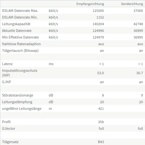 Noch als Nachtrag die Internetdaten der FritzBox falls diese hilfreich sind.