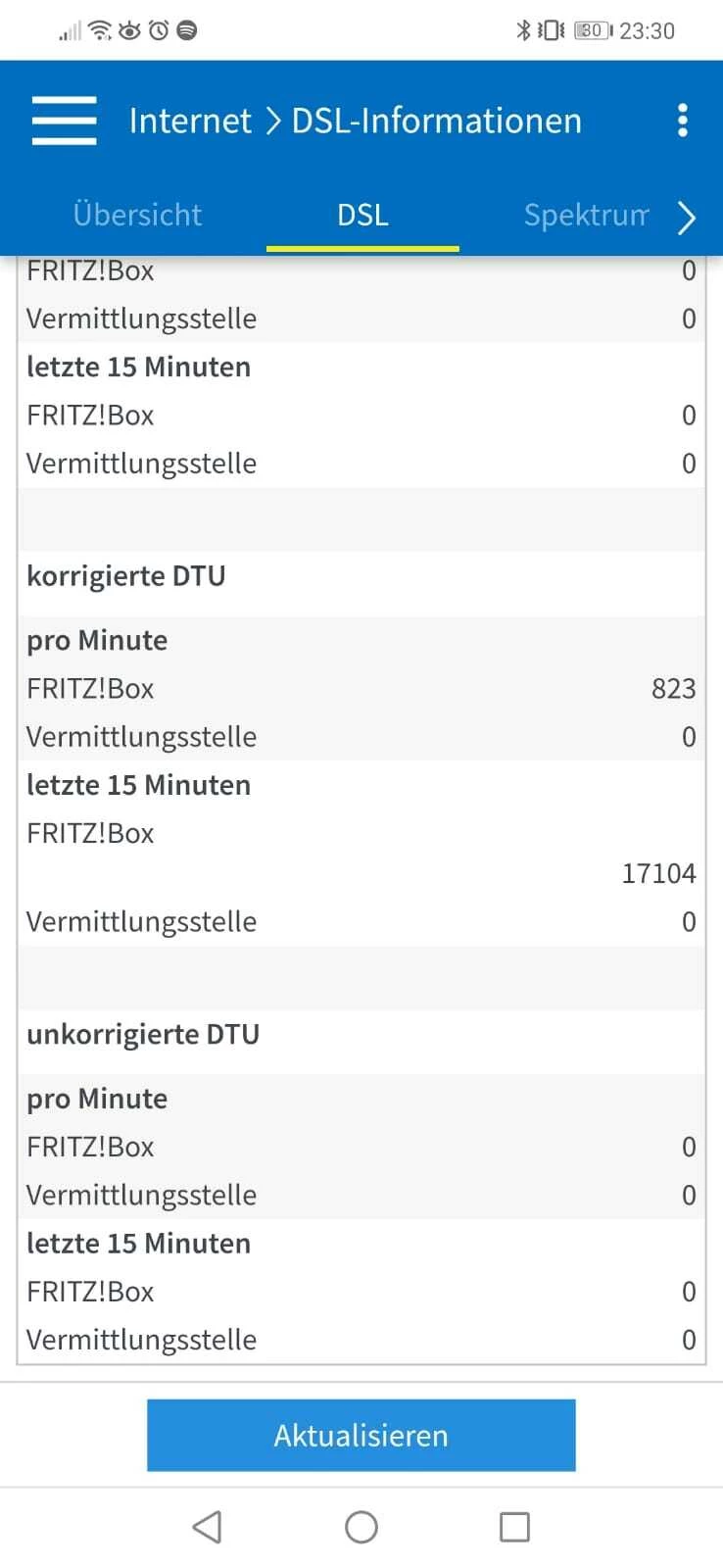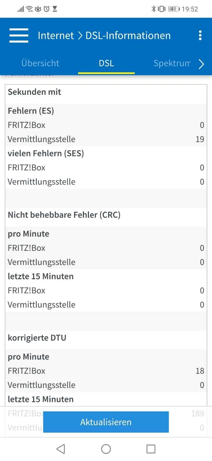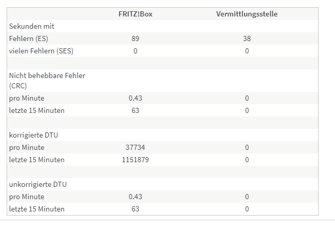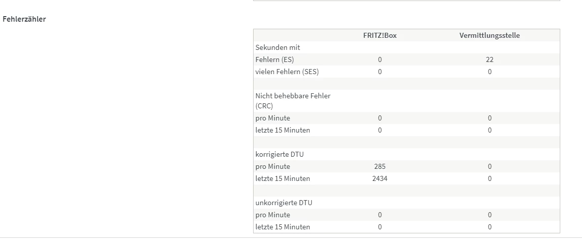 Dann bitte die DTU Fehler nach einer halben Stunde (15 Minuten nach Start der Fritzbox sind diese immer hoch) anschauen. Sind Sie nun niedriger?