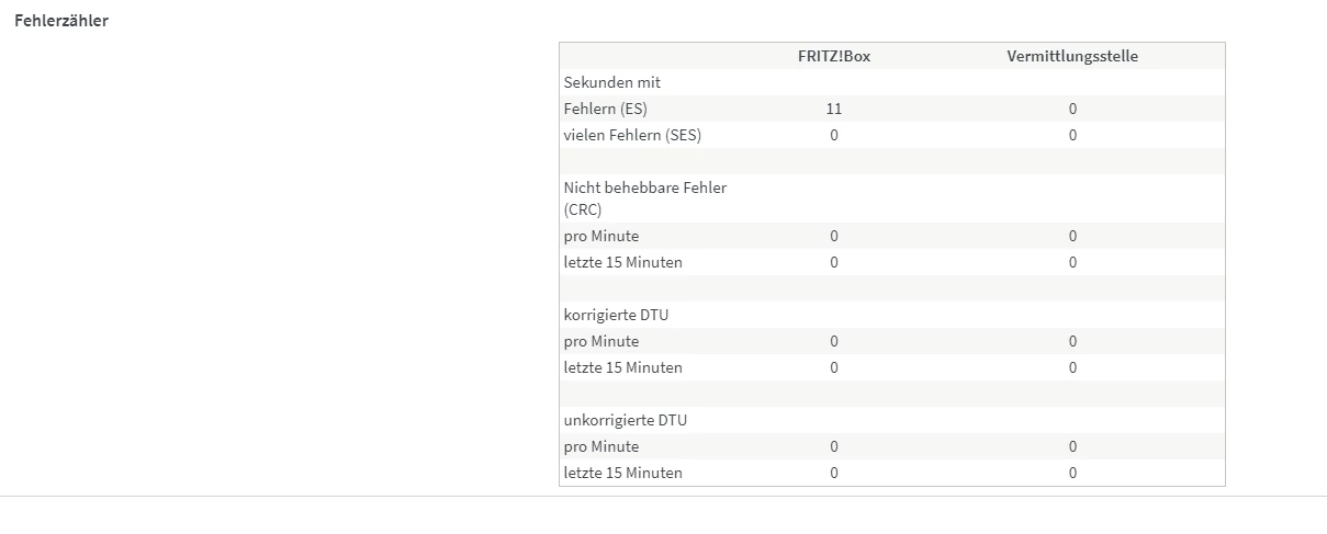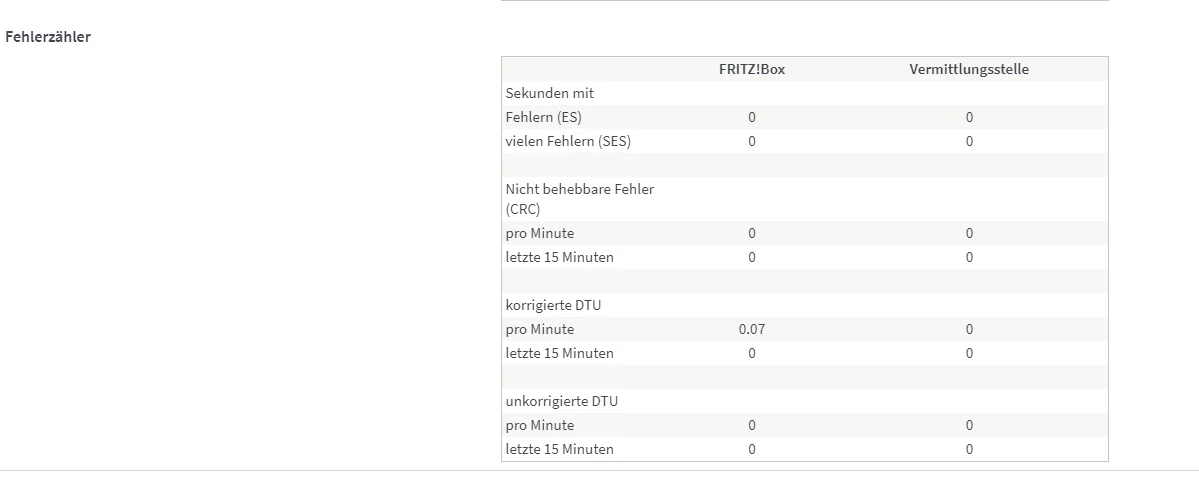 Die Fehler in der FritzBox sind nun auch noch kaum vorhanden: