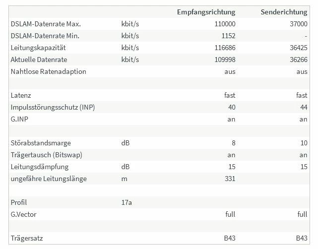 Meine DSL-Leitung wurde auf Vectoring umgestellt, die FritzBox zeigt auch 100/40 Mbit an.