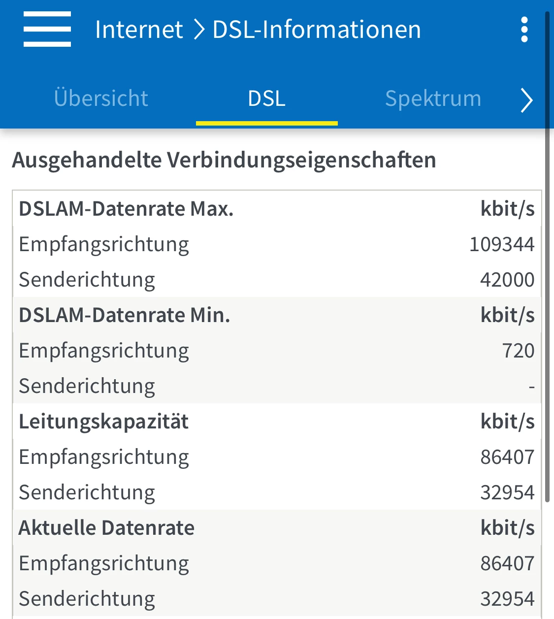 Antwort zusammengefasst: keine technische Störung, Leitung arbeitet mit maximal möglicher standortbezogener Leistung, was jedoch nicht die vertraglich vereinbarte Leistung widerspiegelt