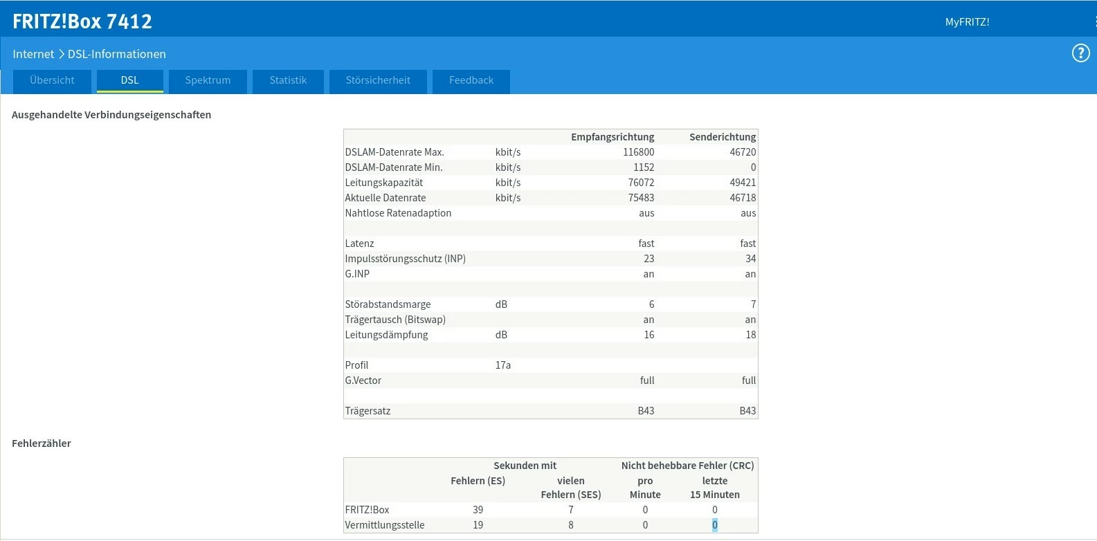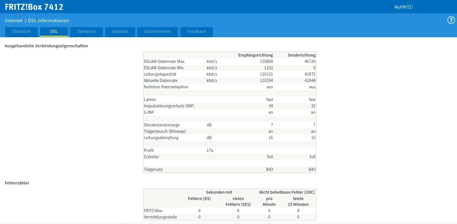 Kannst du, sofern Fritzbox im Einsatz, mal einen Screenshot der DSL-Tabelle mit allen Leitungsparametern unter “DSL-Informationen” - “DSL” posten?