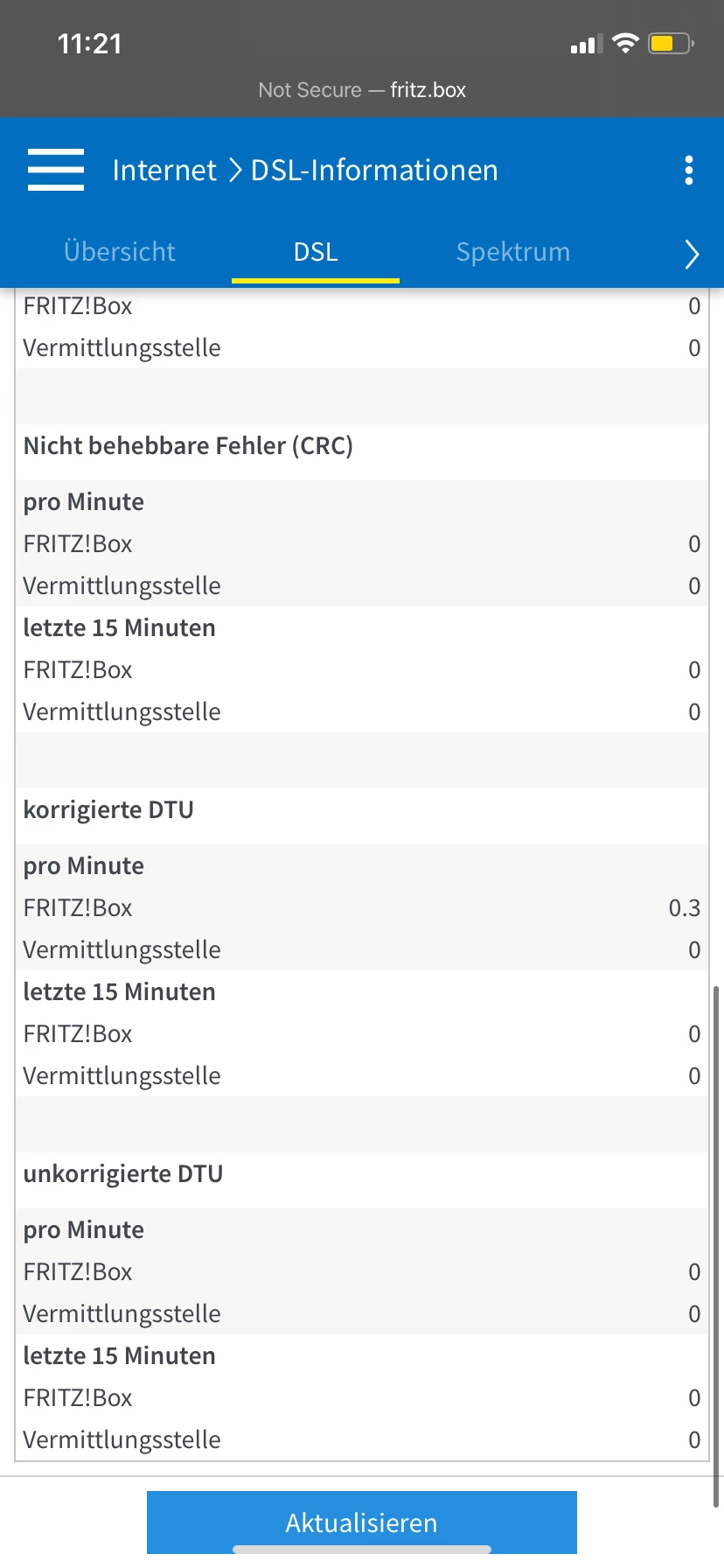 @NickyYoung2297 Ich hoffe Du meinst eine Fritzbox 7490. Poste bitte einen Screenshot aus Internet/DSL Informationen/DSL inkl. der DTU Fehler hier. Danke.
