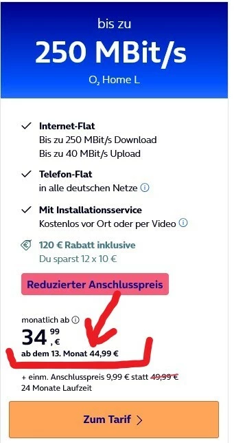 Dauerhaft 34,99 für den gewünschten Tarif ist nicht realistisch.
