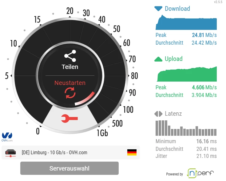 Hier der Speedtest dazu
