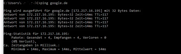 Ping zu google.de zeigt ca. 14ms