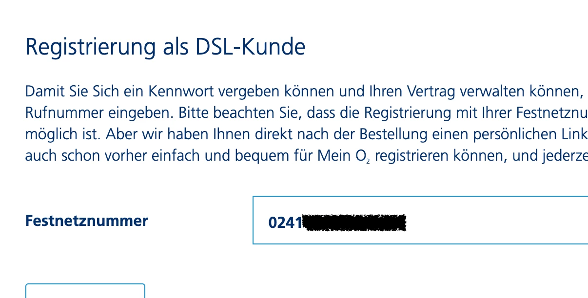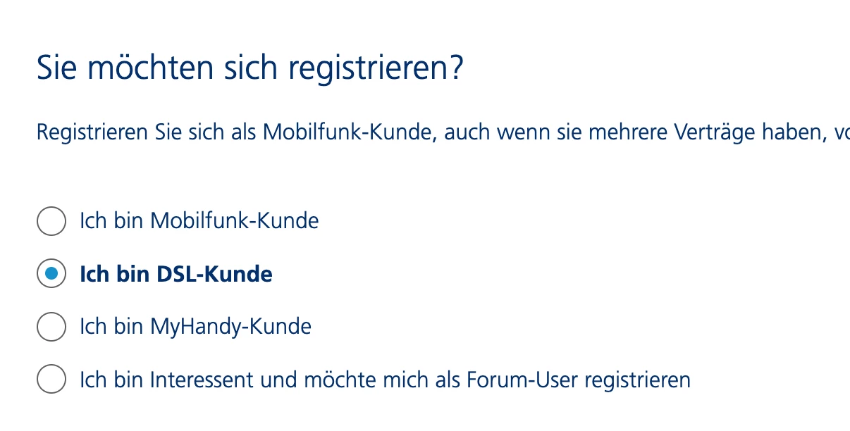Ich registriere mich neu meiner Festnetznummer (als DSL-Kunde). Als Mobilfunkkunde bin ich bereits mit meiner Mobilnummer registriert. Als DSL-Kunde war ich es bis dato.