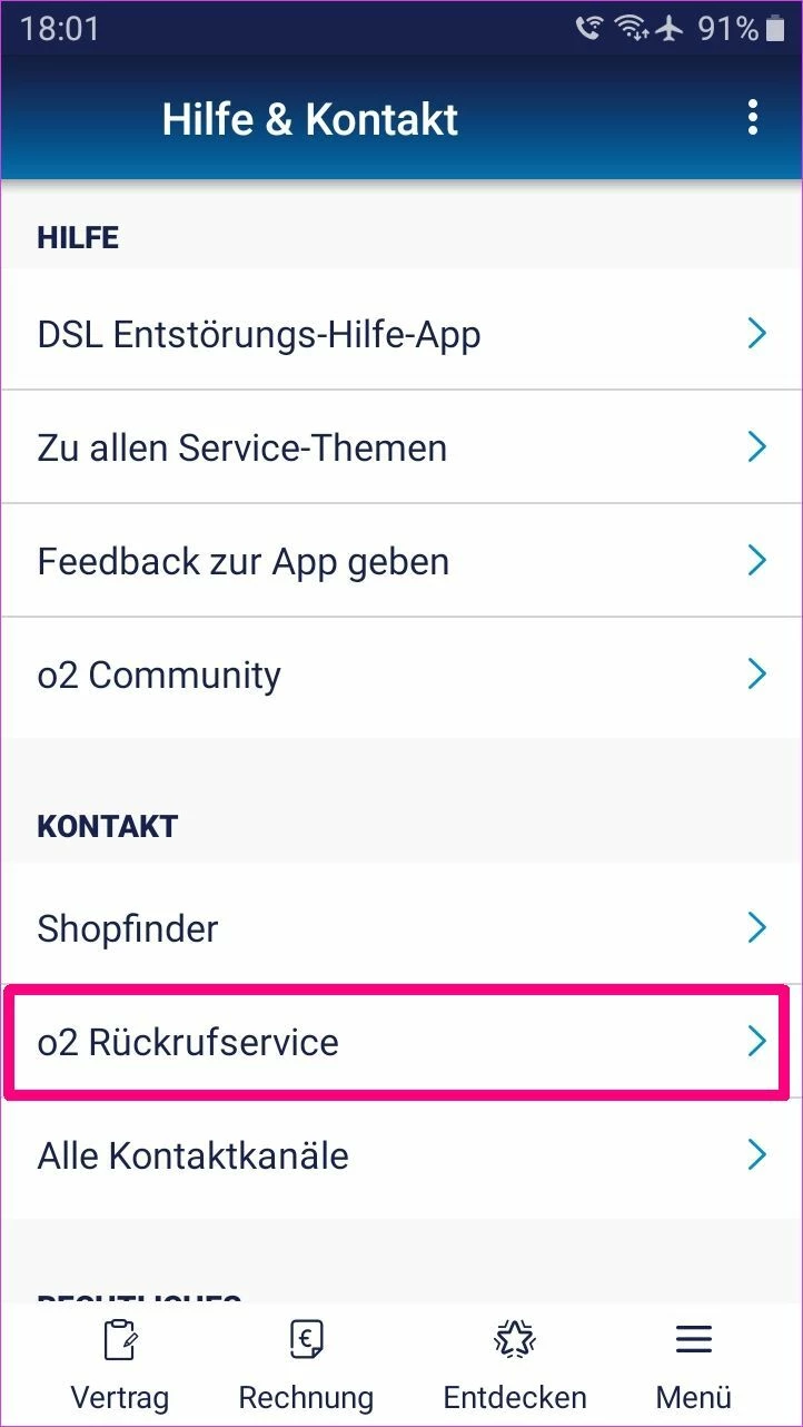 Du kannst auch mit den Rückrufservice der Meino2-App nutzen.