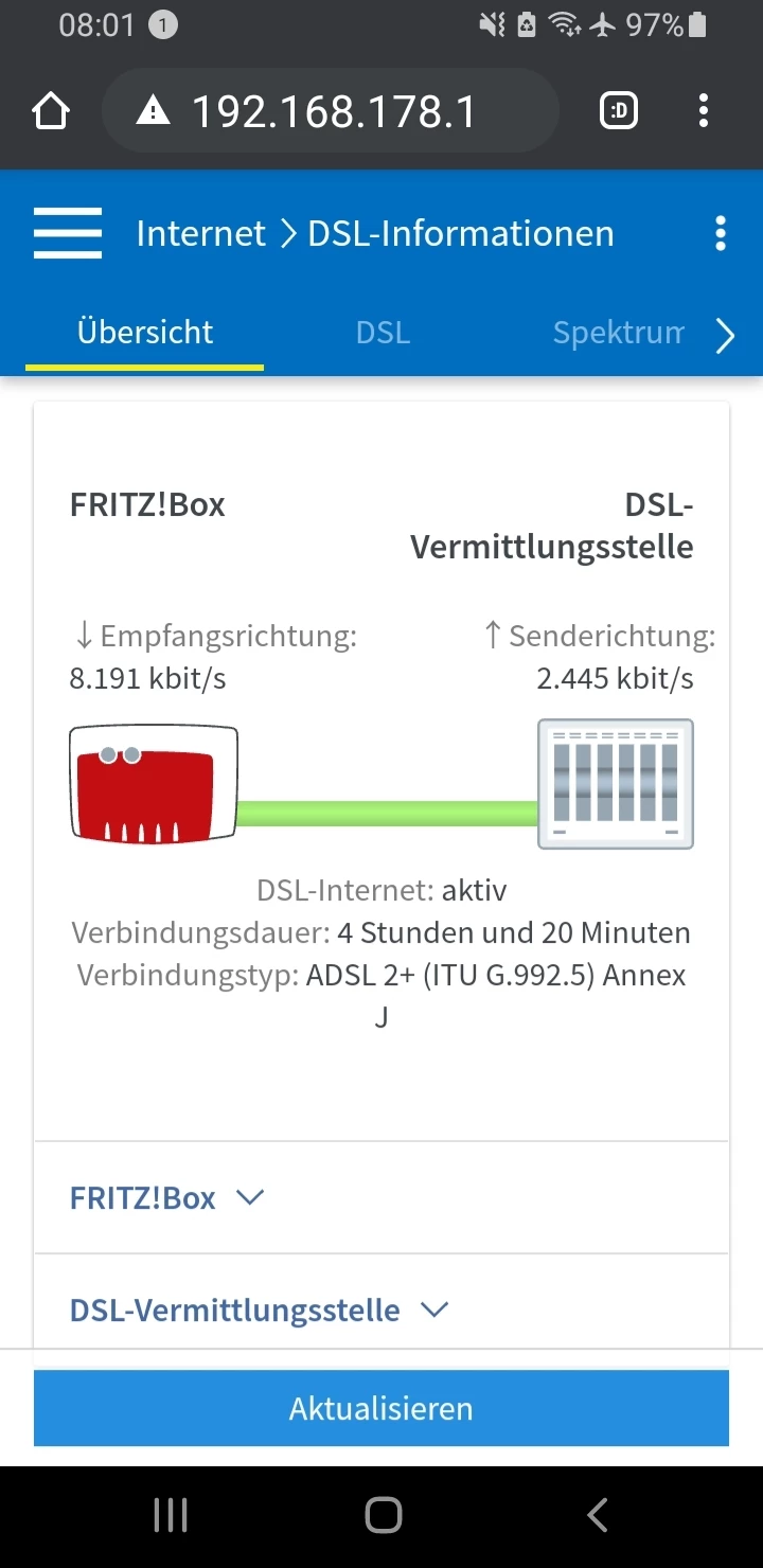 auf dem Reiter Internet/DSL sollte stehen auf welcher Technologie du bist