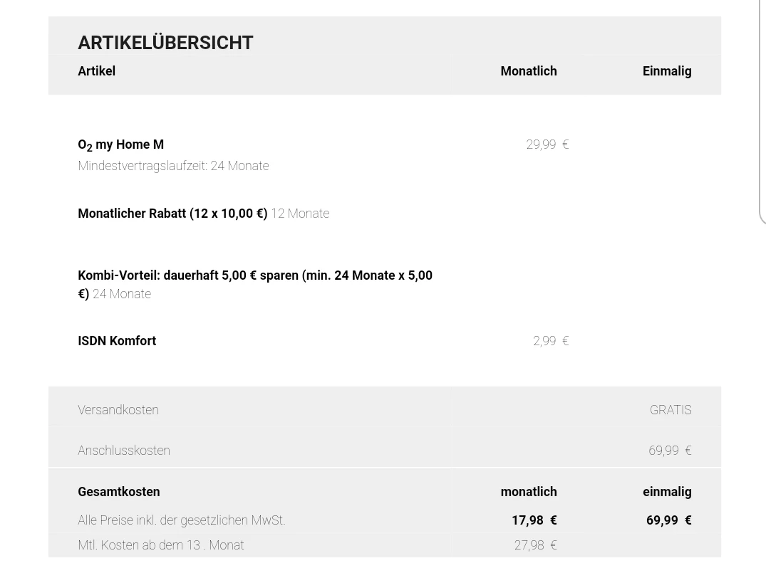 Einen Kombivorteil würdest du hier auch erhalten, dazu einfach “für o2-Kunden” anhaken. In Kombination mit deinem aktuellen Mobilfunktarif würdest du bei 2,50 EUR Rabatt monatlich liegen.