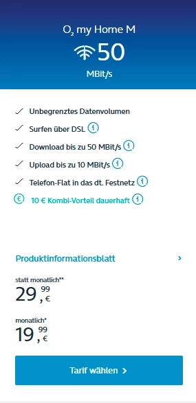 Der Tarif o2 DSL M wird nicht mehr angeboten. Bitte wähle einen aktuellen Tarif. Siehe Preisliste
