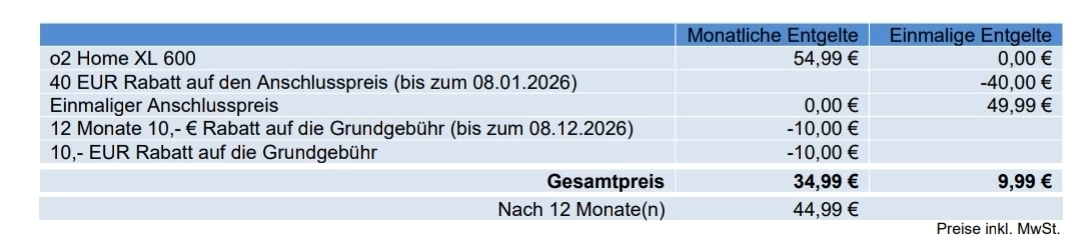 Diese Vertragszusammenfassung bezieht sich auf einen Neuvertrag (ein Anschlusspreis fällt bei einer VVL mit Technologiewechsel nicht an)...