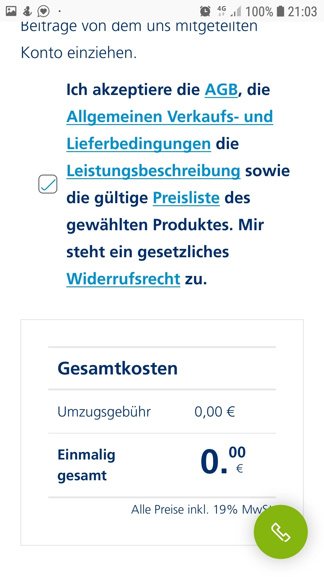 Eingangsbestätigung DSL Umzug fehlerhaft