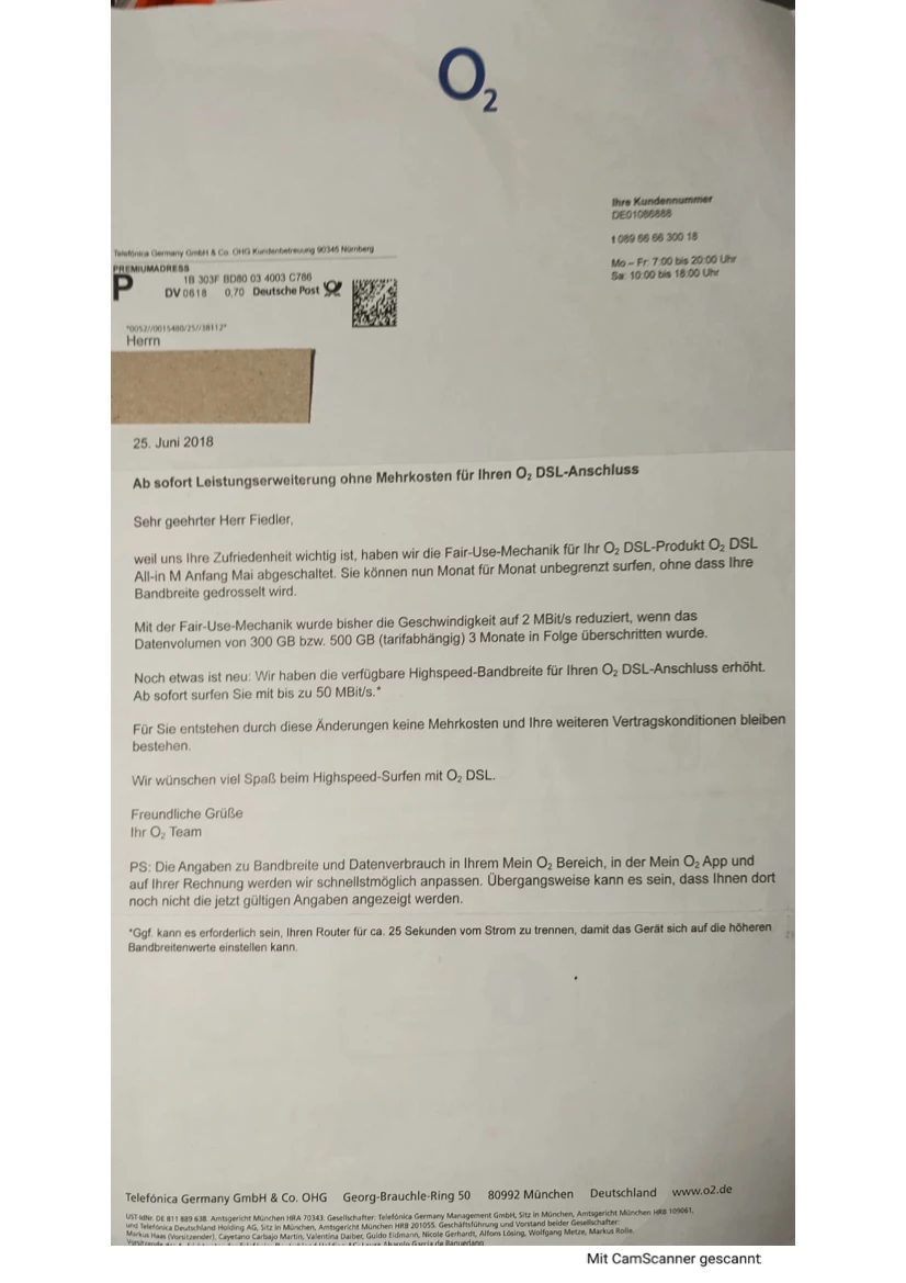 Da meine Angaben zumindest von blablub bezweifelt werden – hier der Brief von O2(06/18) zu den veränderten Bandbreiten.