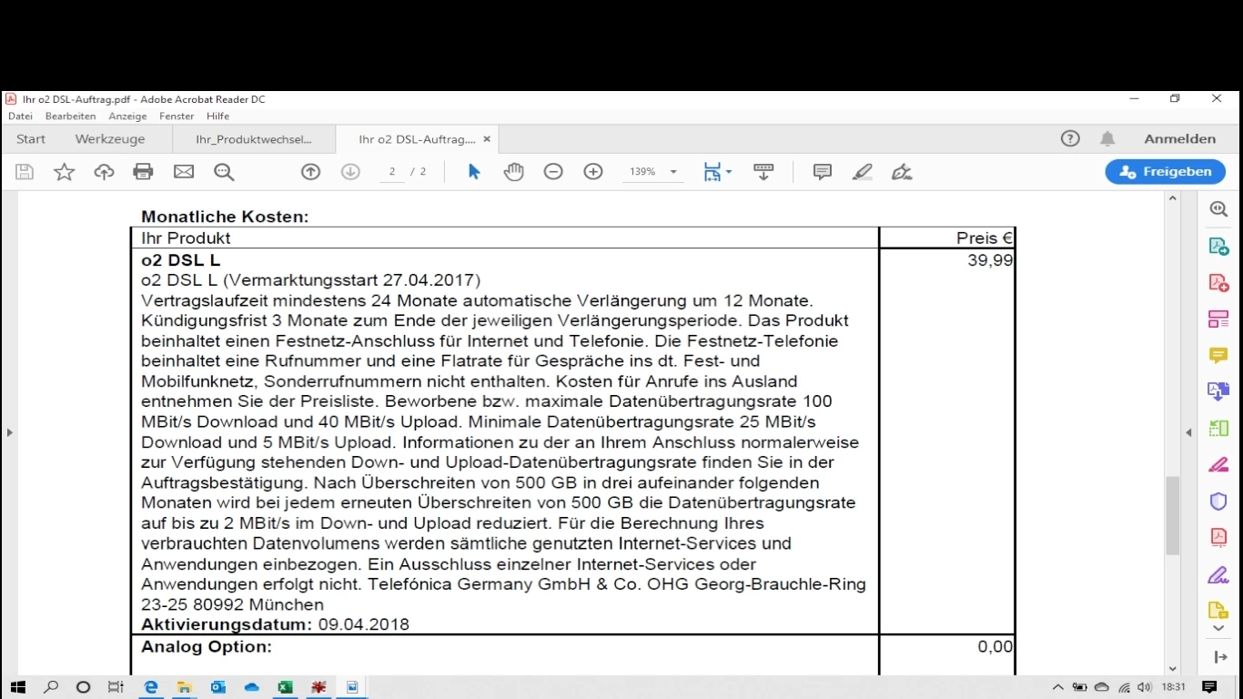 Eingestellter DSL-Anschluss entspricht nicht dem Vertrag