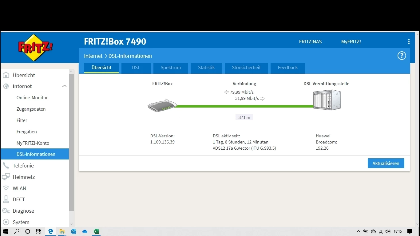 die Fritzbox gibt unter DSL-Informationen Auskunft über “Ausgehandelte Verbindungseigenschaften” wie Leitungskapazität, max. DSLAM-Datenrate, etc.. Seitdem die Telekom in 2018 auf VDSL100 ausgebaut und O2 meinen Anschlussvertrag ebenfalls der neuen Leitungskapazität angepasst hat. Die Fritzbox hat alles exakt angezeigt, seit etwa Mai 2019 aber nicht mehr. Im Download werden nur noch Max.-Werte zwischen 70 und 90 Mbit/s angezeigt. Wenn ich dann über LAN oder WLAN nachmesse, liegen die tatsächlichen Messwerte generell unter den jeweils angezeigten maximal erzielbaren Wert.