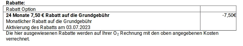 vielen Dank für Ihre E-Mail. Leider war mir ein telefonischer Informationsaustausch nicht möglich [Anm: wieso?]. Daher erhalten Sie meine Stellungnahme in schriftlicher Form.Gern habe ich mich Ihrer Vertragsanfrage angenommen und den Sachverhalt für Sie geprüft. Ihren Kun­den­daten kann ich entnehmen, dass der Vertrag vom 6. Mai 2023 storniert wurde. Inder Vertragszusammenfassung vom 6. Mai 2023 war der Rabatt von 24x7,50 EUR enthalten. Der Auftrag vom 4. Juli 2023 enthält keinen Rabatt auf die Grundgebühr.Um Missverständnisse zu vermeiden, erhalten Sie bei Vertragsänderungen immer eine schriftliche Bestätigung, beispielsweise per E-Mail. Die darin enthaltenen Informationen sind verbindlich. Diese haben wir Ihnen am 4. Juli2023an die bei uns hinterlegte E-Mail-Adresse schriftlich bestätigt.