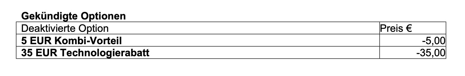 Bisherige Rabatte entfallen, neue Mindestvertragslaufzeit von 24 Monaten, neue Rabatte können vereinbart werden.