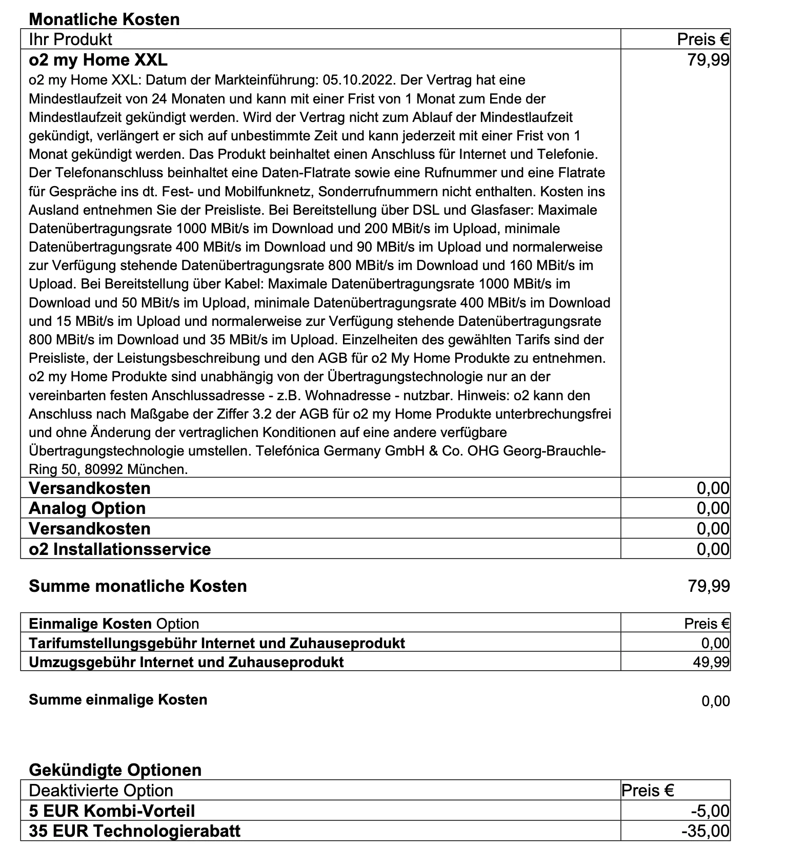 Als Info: Wenn ich versuche, auf dem O2 Webseite einen neuen Vertrag zu schließen, gibt es bei meinem neuen Ort eine Technologierabatt. Das heißt, ohne meine vorherige Rabatt zu bekommen wäre das nicht lohnen, eim Umzug zu machen, sondern einfach einen neuen Vertrag zu schließen.