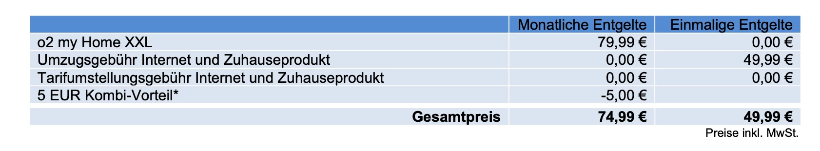 Umzug ohne Vertragsverlängerung = 49,99€