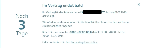 6. Der Support verlangte daher eine außerordentliche Kündigung, die ich am 22.01.2026 eingereicht habe. Der Vertrag ist aber weiterhin aktiv.