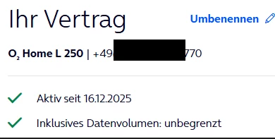 • Der ursprünglich bestellte Vertrag mit Aktivierungstermin 16.12.2025 konnte nicht geschaltet werden, da hier die falsche Adresse (7 statt 7a) angegeben war. Dieser Vertrag wurde von dir widerrufen.